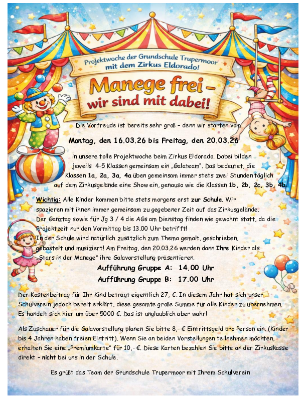 Für die Kinder der Grundschule Trupermoor geht es 2024 ganz besonders ermutigend und stärkend los. Zum wiederholten Male ist ein Spielerpaar der theaterpädagogischen Werkstatt aus Osnabrück für ein nachhaltig beeindruckendes Präventionspaket zum Themenbereich Gewalt und Missbrauch gebucht. Das seit über 20 Jahren bekannte Projekt "Mein Körper gehört mir" für die Jahrgänge 3/4 und "Die große Nein-Tonne" für die Jüngsten ermutigt Kinder auf humorvolle Art und Weise in kindgerechter Sprache praktische Strategien zu entwickeln, um ihre Ich-Stärke auszubauen.