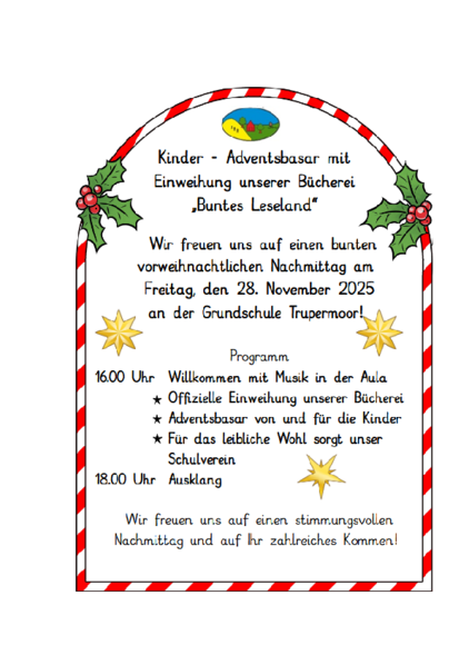 Für die kommenden Festtage wünscht die Grundschule Trupermoor ...
