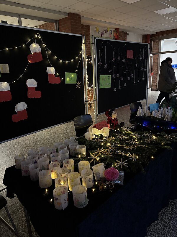 Am letzten Schultag vor den Weihnachtsferien geht es in Trupermoor gerne besonders besinnlich und musikalisch zu. Unter der Leitung von Frau Schiffels und Frau Gronau hatten die Schülerinnen und Schüler unserer Musical AG in wochenlanger Arbeit ein "Sternenstück" einstudiert. Vor liebevoll dekorierter Himmelskulisse präsentieren sich vier Sterne, die durch ihr Fernrohr das Geschehen auf der Erde beobachten. Sie bewundern den Morgenstern, der wohl einen Spezialauftrag hat und sich vor allen Dingen frei bewegen kann. Sehr ungewöhnlich tatsächlich für einen Stern! Wie dieser besondere Stern die Hirten zu ihrem Ziel führt, das zeigten die Kinder auf der Bühne voller Freude.
