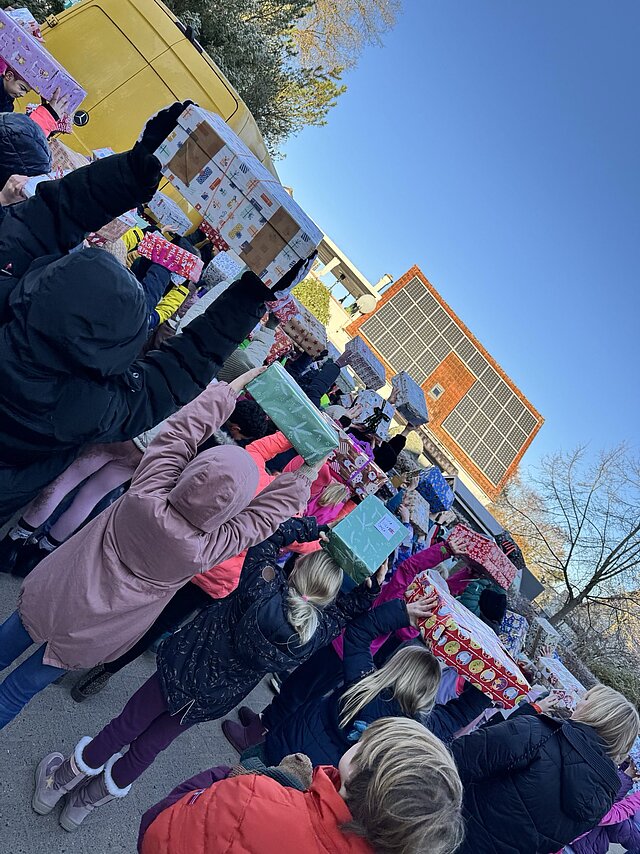"Unglaublich!", riefen da die Ehrenamtlichen Helfer der Roundtabler, als sie auf unseren Schulhof kamen. Alle Schülerinnen und Schüler hatten bereits seit Mitte November fleißig Päckchen gepackt und in den Klassenräumen gesammelt. Wie seit vier Jahren, so sind wir auch in diesem Jahr wieder dem Aufruf gefolgt, um Kindern in Not eine kleine Freude zu bereiten. Der Konvoi wurde mit "Weihnachtsglocken läuten" gesangsstark begrüßt um anschließend 160 Päcken in den Transporter zu zählen. Es war mal wieder ein wunderbares Erlebnis.